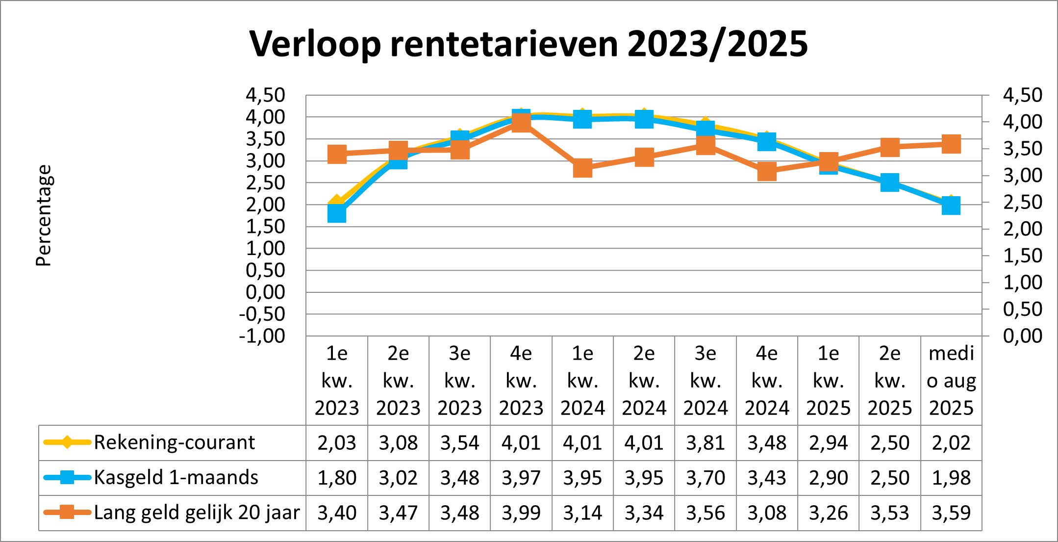 De rente op de geld- en kapitaalmarkt wordt voornamelijk bepaald door het beleid van de Europese Centrale Bank (ECB). De Europese Centrale Bank heeft in 2024 en 2025 de rentetarieven verlaagd. De herfinancieringsrente is over genoemde periode verlaagd van 4,50% naar inmiddels 2,15%. De herfinancieringsrente is de rente die banken moeten betalen aan de ECB wanneer zij geld bij de ECB opnemen..